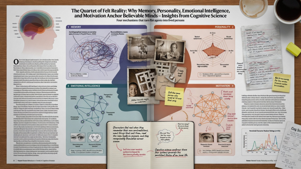 This is the same trick cognitive science found in human beings. Real people are also not lists of traits. They are patterns, and the patterns produce behavior across situations the person has never encountered before. If your character works the same way, they will feel real — because they are working the way real minds work.
